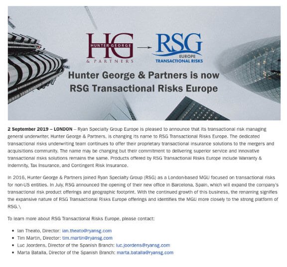 Ryan Specialty Group Introduces RSG Transactional Risks Europe NewsBy Ryan Transactional RiskSeptember 2, 2019